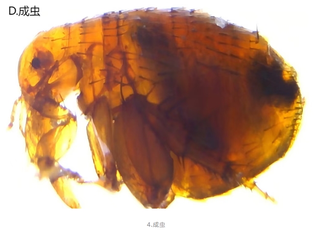 印鼠客蚤屬于完全變態昆蟲,成蟲兩側扁平,棕黃色至深褐色,體長一般為3毫米左右。其生活史包括卵、幼蟲、蛹和成蟲四個階段。卵為橢圓形、暗黃色,表面光滑,在適宜的溫濕環境下可在2-7天內孵化。幼蟲呈蛆形,白色或淡黃色,以環境中各種有機碎屑為食。幼蟲經歷三齡、蛻皮兩次后成熟,隨后吐絲結繭化蛹。蛹具有成蟲雛形,并逐漸變為淡棕色,1-2周后羽化為成蟲。