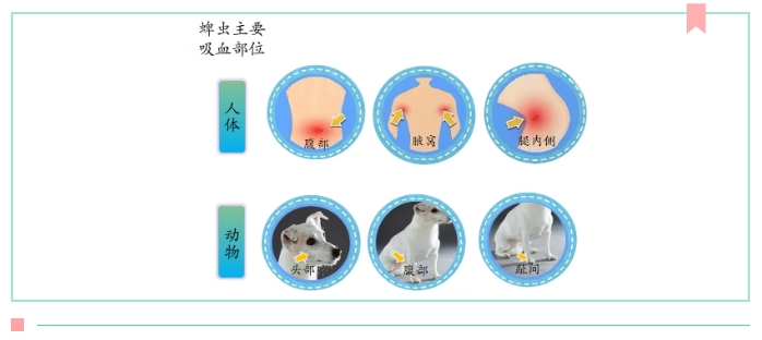 蜱蟲的一生需要經(jīng)歷卵、幼蟲、若蟲和成蟲四個(gè)階段,幼蟲吸血后發(fā)育為若蟲,若蟲吸血后發(fā)育為成蟲,而成蟲也要吸血后才可產(chǎn)卵,所以吸血是蜱蟲一生孜孜不倦的追求(除極少數(shù)種外)。蜱蟲還是一種非常聰明的生物,它會(huì)對(duì)宿主的寄生部位進(jìn)行選擇,一般會(huì)在皮膚較薄、不易被觸碰到的部位寄生,如人和動(dòng)物的頸部、耳后、腋窩、腰腹部、腿內(nèi)側(cè)以及動(dòng)物趾間等。